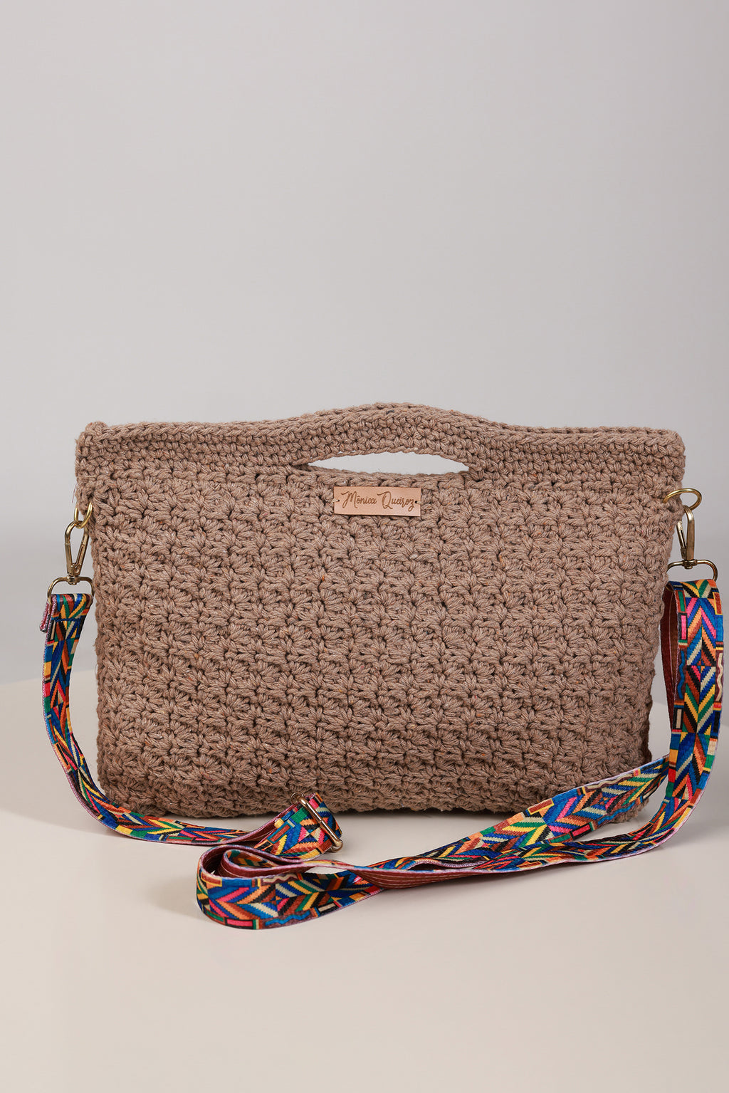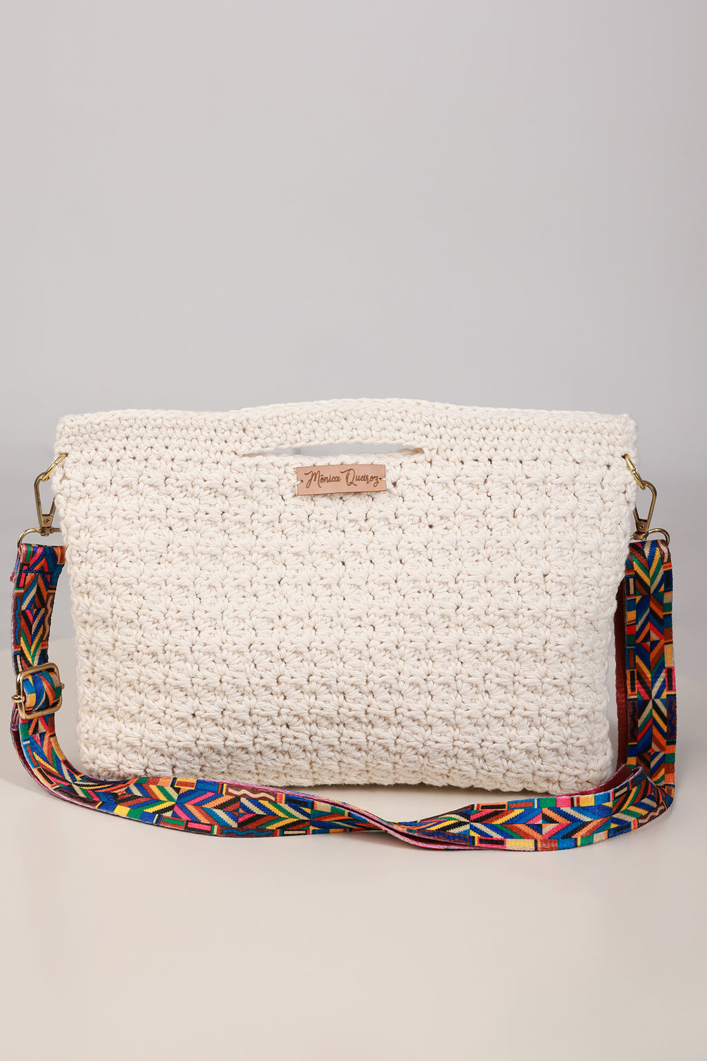 Bolsa Modelo Lílian. Este modelo é confeccionado artesanalmente e possui uma alça colorida.
