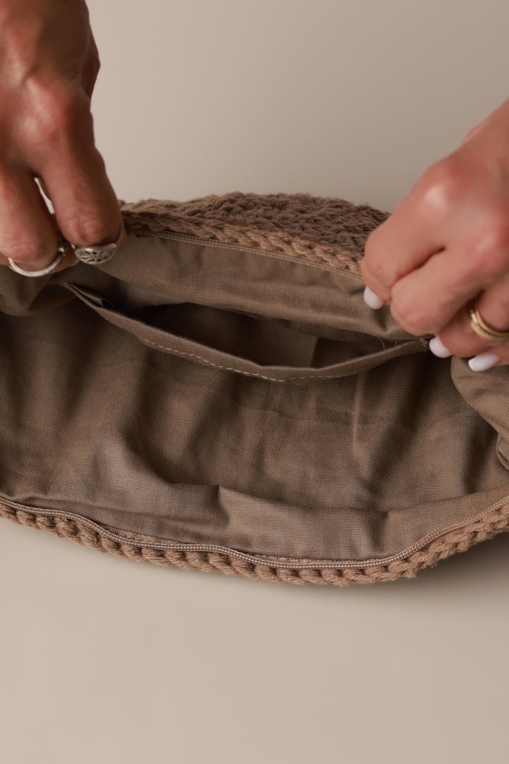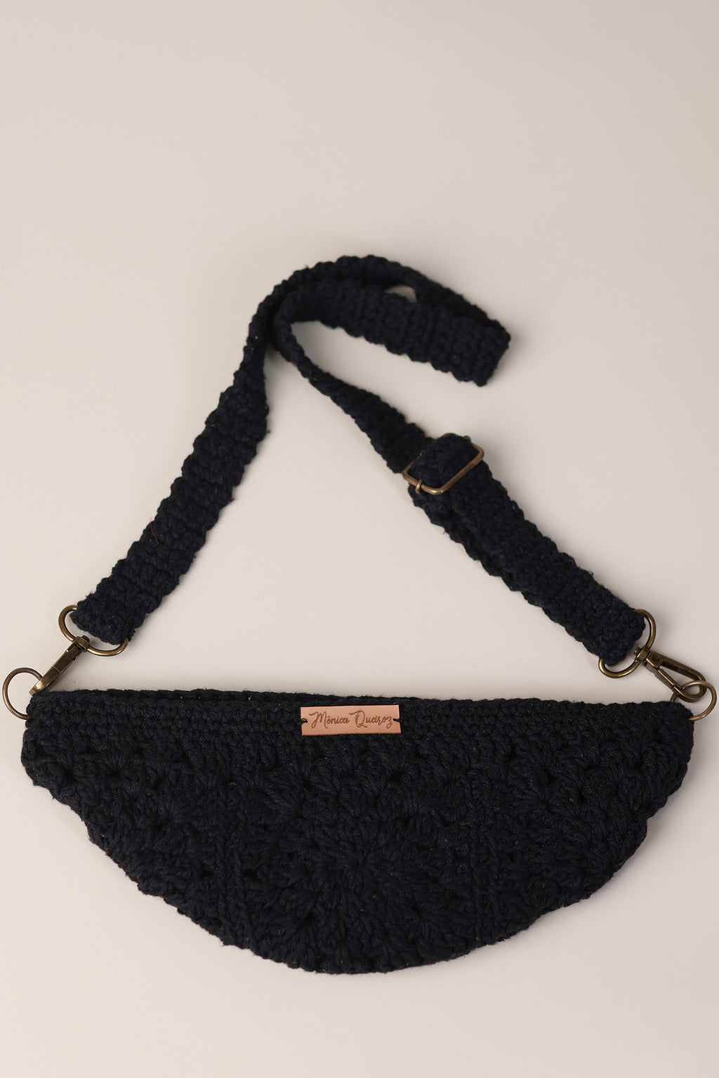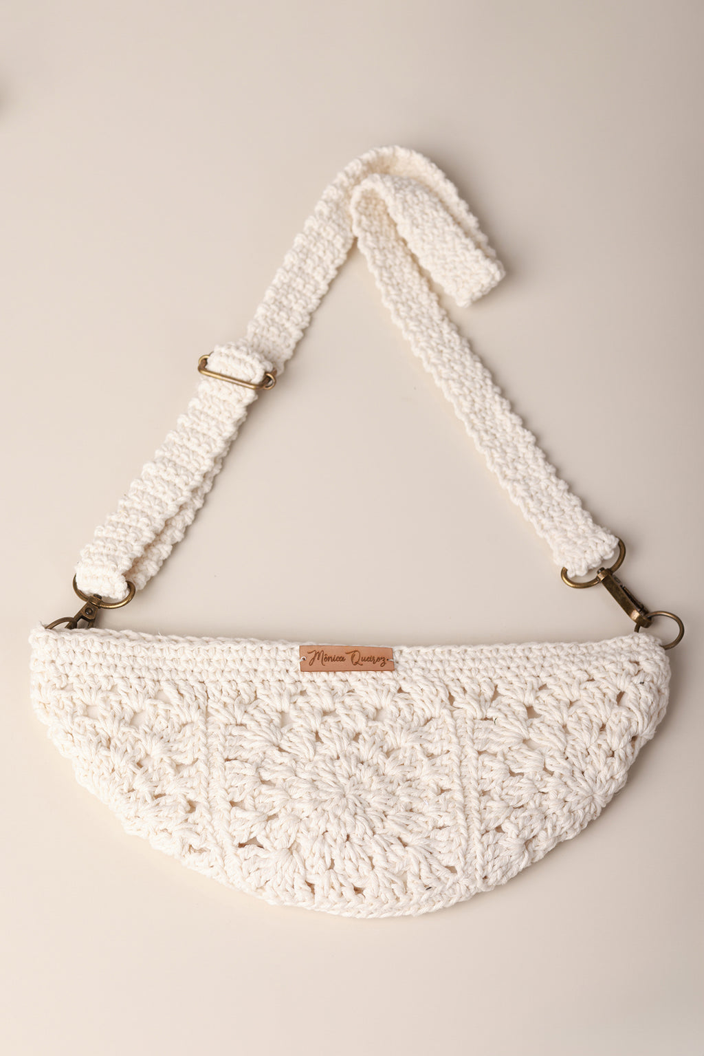 As peças são totalmente forradas com tecido 100% algodão. A pochete possui fecho de 30 cm (zíper) e uma alça transversal de crochê regulável.