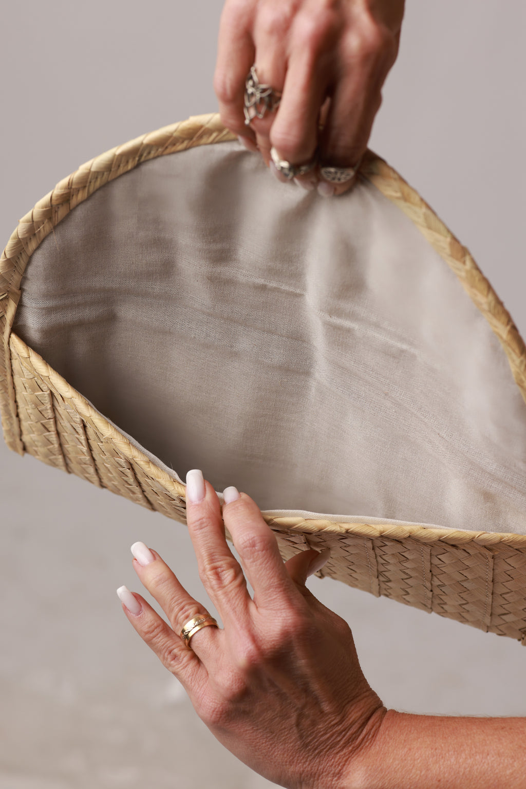 Bolsa Carteira Modelo Ilhéus, confeccionada artesanalmente (feita à mão) em palha de carnaúba. O interior é forrado com tecido 100% algodão.