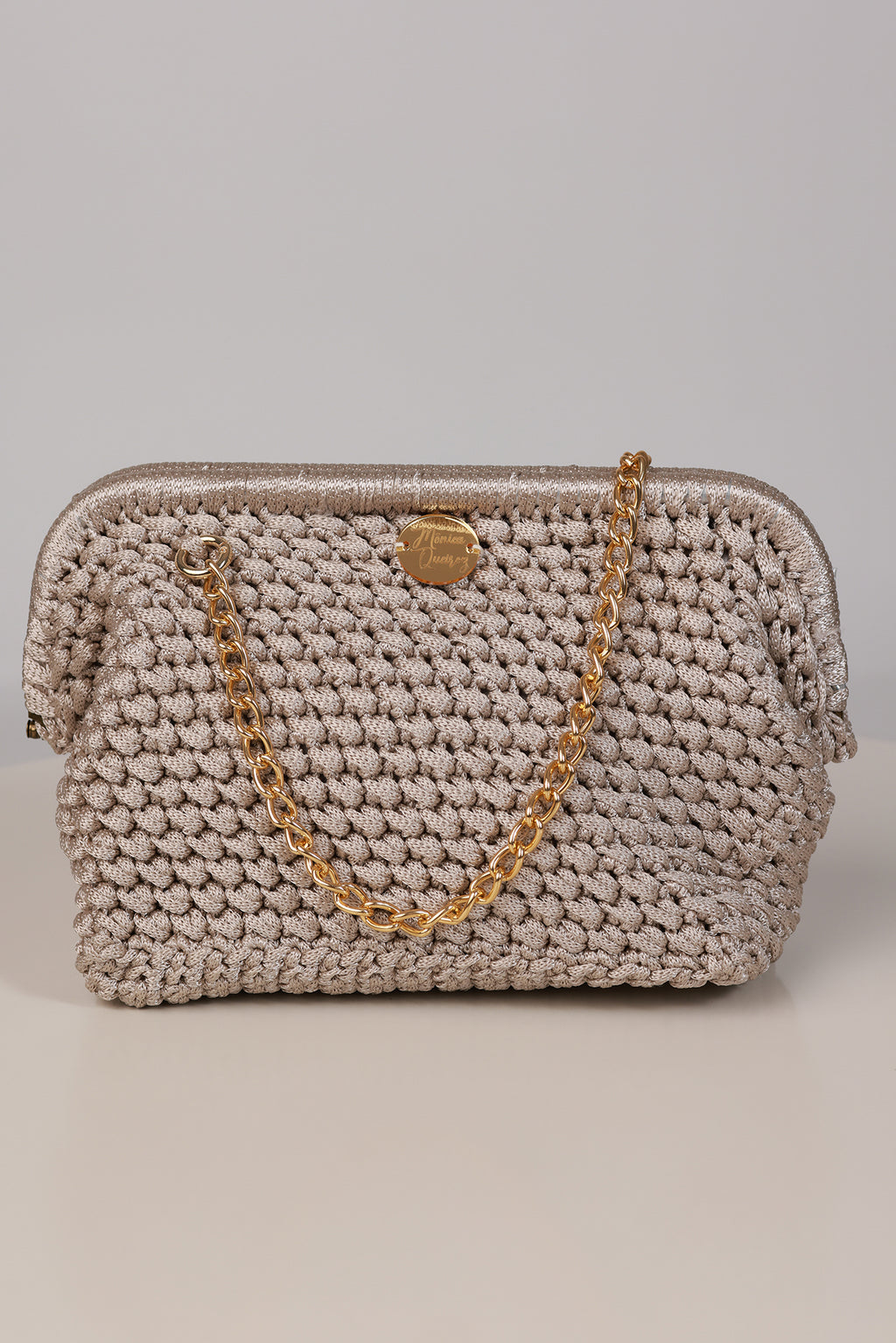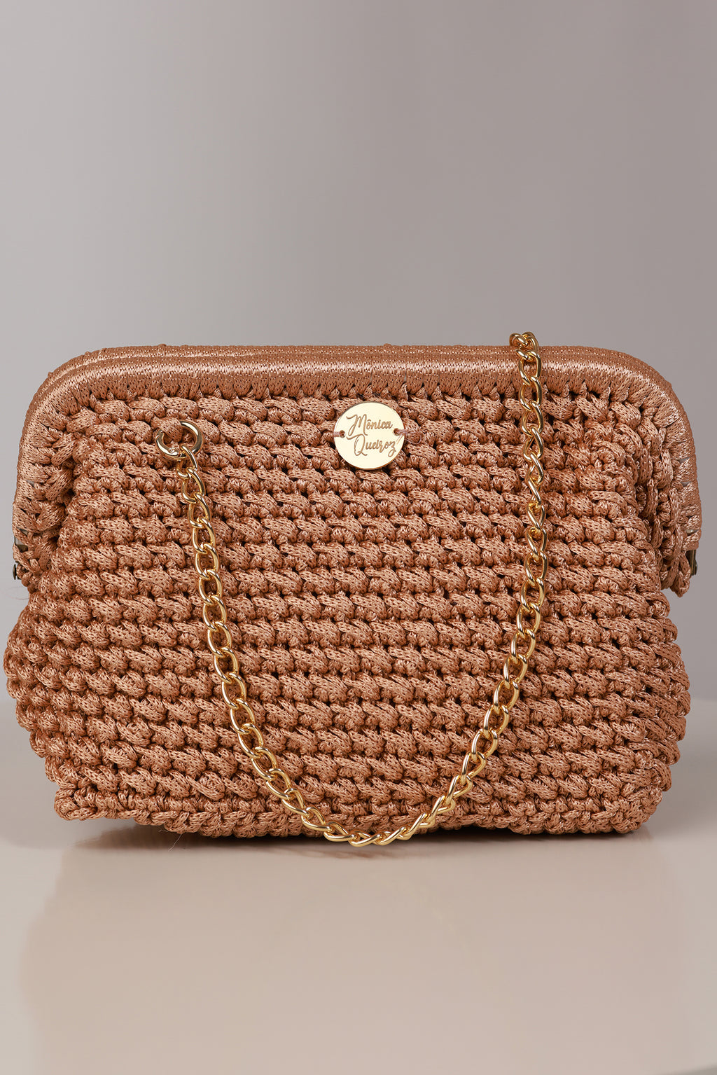 Inclui uma corrente dourada de 60 cm que é removível e possui argola articulada, permitindo o uso da bolsa como clutch ou tiracolo (a tiracolo).