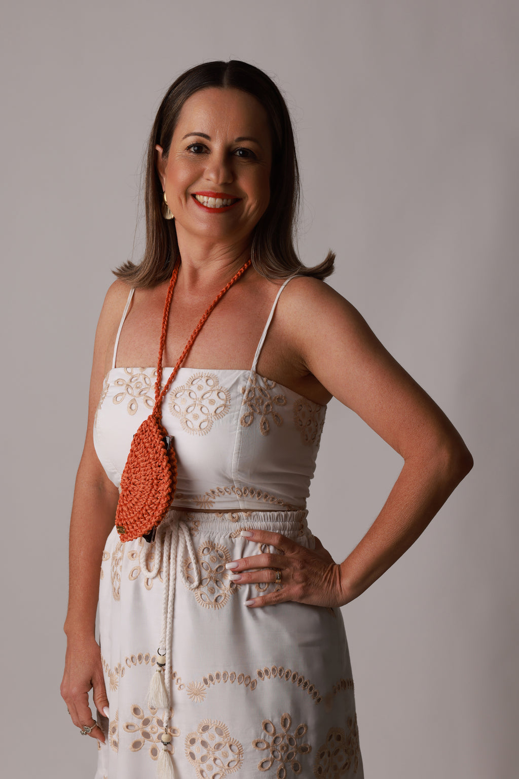 Detalhes: Fechamento com botão de ímã magnético, Alça de crochê (aprox. 70 cm).